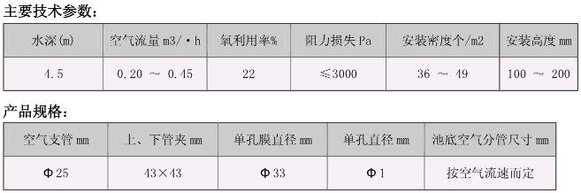 單孔膜曝氣器,是BAF曝氣系統(tǒng)中的重要部件,能為好氧微生物提供充足的溶解氧。單孔膜曝氣器不受池內(nèi)溫度與氣溫之差,不受濾池高度及生物陶粒濾料空隙率影響,氣泡直徑小,