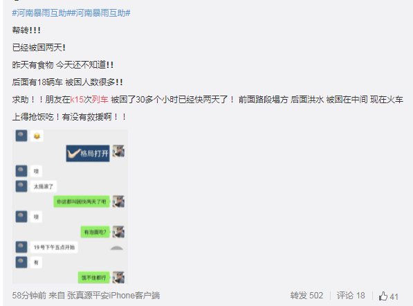 7月21日09時,接通知,鄭州市防辦與K226次列車乘客楊女士取得電話聯(lián)系,據(jù)楊女士反映,K226次列車于7月19日16時30分許從鄭州站出發(fā)開往蘭州,列車在離開鄭州站后的第二個車站(鐵爐站)停靠,截至目前已經(jīng)停靠超過40小時,另據(jù)列車乘務員反映,本次列車乘員約735人左右,目前乘客情緒總體穩(wěn)定,車上21日已斷糧斷水,急需救援。