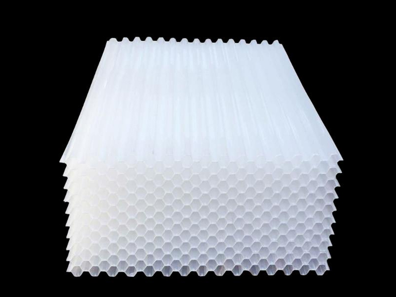 蜂窩斜管填料在沉淀池中的內(nèi)切圓直徑多為35mm。蜂窩斜管填料沉淀池的一個重要優(yōu)點是其水力半徑很小,使得六角蜂窩斜管填料中的水流雷諾數(shù)很小,可以使流態(tài)處于層流或接近層流,滿足小紊亂的要求。同時,水力半徑小,水流穩(wěn)定性大,抗干擾能力強。由于這些原因,沉淀池中蜂窩斜管填料的內(nèi)切圓直徑不宜過大。當然,為了防止管道淤積,蜂窩斜管填料的內(nèi)切圓直徑不能太小,工程控制在35mm左右。但當池內(nèi)顆粒沉淀物較多,且使用壽命較長時,應選擇斜管填料內(nèi)切圈直徑較大、厚度較厚的尺寸,推薦蜂窩斜管填料50mm和80mm。